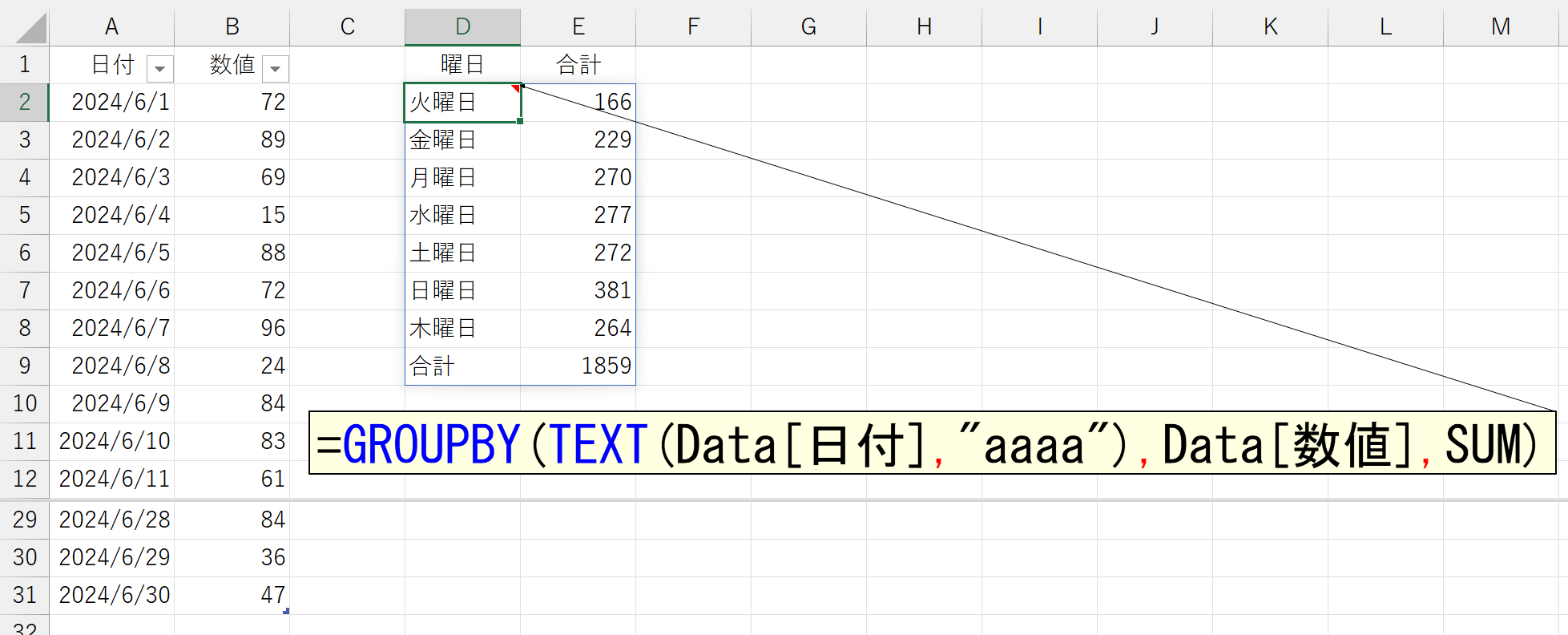 2023年11月に追加されたGROUPBY関数の解説です。ちなみに、本稿は2024年4月に書いています。新しい関数が追加されたら、できるだけ早く解説しようと考えていますが、この関数に関しては時間がかかりました。意外と奥が深いからです。ただ、半年近く経って、ひとつ言えるのは、現在メッチャ使ってるということです。そもそも、これは何をする関数かと言えば、簡単にザックリ言うと「SUMIFやCOUNTIFを、ワンタッチで計算」してくれるヤツです。「だったら、SUMIF関数やCOUNTIF関数を使えばいいやん!」って思うかも知れませんが、実務では必須のSUMIF関数とCOUNTIF関数って、すごく特殊な関数です。両者は2002年に追加されたのですが、他の関数と比べて異様です。確かに便利なのですけど、便利を追求した結果、現在主流である"スピル"とは相性が悪いです。2002年の時点で、"スピル"みたいな"表計算ソフトの常識を覆すような仕組み"が実装されるなんて、想定しなかったのでしょうね。