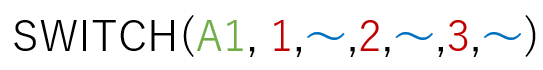 さて、SWITCH関数は、VBAのSelect Caseと同じような仕組みなら、もしかして、同じことができるんじゃね?って、しばらく使っていて気づきました。やってみたら、できました。