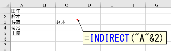 INDIRECT関数を使うと、次のように、参照するセルのアドレスを文字列で指定できます。