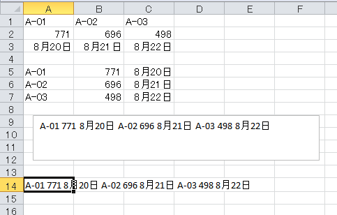 手順が多くて、面倒くさいですね。何とか、Excelの標準機能だけ(関数を除く)で実現しようとしたら、こうなってしまいました。まぁ、できるのは間違いありません。ただし、Excel 2007以降です。Excel 2003までのテキストボックスでは、上記の手順6で貼り付けができません。