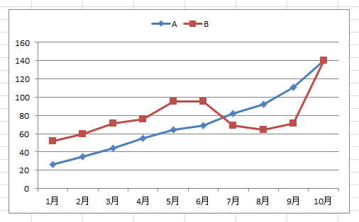 これで、項目名の書き換えは終わりです。続いて、系列「A」と系列「B」の値が自動的に変化するようにします。といっても、考え方は一緒です。