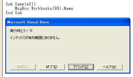 何だかもう「分類されないその他のエラー群」みたいな感じですね。ちなみに、ヘルプの「トラップできるエラー」の一覧には、この1004はリストアップされていません。でも、トラップできるので、解説に加えておきました。