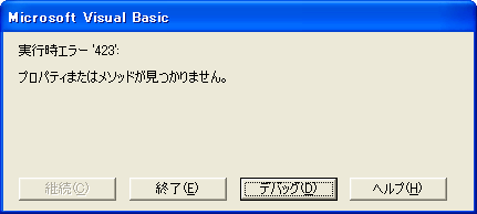 この手の誤りでは、エラー番号438の「オブジェクトは、このプロパティまたはメソッドをサポートしていません」のエラーが発生するようですね。