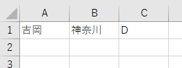 さて、このようにGetDataメソッドの引数には、取得したい項目を半角スペースで区切って指定します。もちろん、項目と半角スペースを&演算子などで文字列結合してもいいんですけど、これ、項目数が多くなると煩雑です。やってみましょうか。上記 GetData("吉岡 神奈川 D") の"吉岡"と"神奈川"と"D"が、それぞれセルに代入されていたとします。