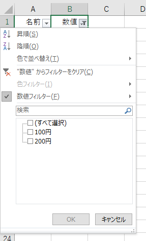 うまくいかないんです。正解は「セルに表示されている文字列"100円"を指定する」です。この件、ほとんど知られていませんので、よ~く覚えておいてください。Excelのオートフィルタは、セルに入力されている値ではなくセルに見えている文字列で絞り込むんです。これ、実は手動操作のときは、それほど意識をしません。なぜなら、▼ボタンをクリックすると