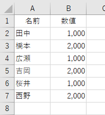上図のように桁区切りの表示形式が設定されているケースでは「1,000」のようにカンマ(,)まで含めて指定しなければ失敗します。