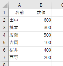 上図の表で解説します。まずは「B列が"300より大きい"」で絞り込むには次のようにします。