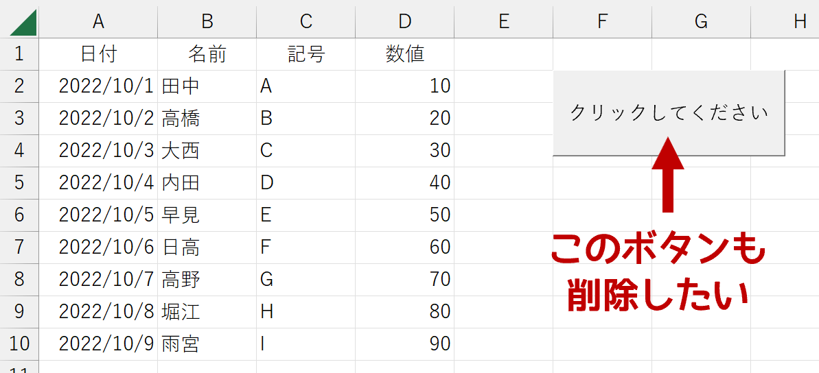 みなさん、マクロを実行するときってどうしてますか?VBAが分からないExcelのビギナーに「VBEを開いて[F5]を押してください」ってのは無理ゲーです。多くの場合、ワークシート上にボタンなどを配置して、そのボタンをクリックすることでマクロが実行できるようにすることが一般的です。これなら、ビギナーでも扱えますからね。でも、先の方法で「マクロなしブック(xlsx)」として保存しても、ワークシート上のボタンは残ったままです。これは、いただけません。ボタンには「クリックされたとき、どのマクロを実行するか」という情報が記録されていますので、クリックすると「マクロがありません」みたいなエラーになります。ここはひとつ、ボタンも削除しちゃいましょう。