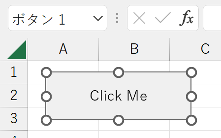 ややこしくなるので、ボタンに表示する文字列(Captionプロパティ)は「Click Me」に編集しました。さて、このボタンの名前は「名前ボックス」に表示されている"ボタン 1"です。したがって、このボタンは Shapes("ボタン 1") で特定できます。では、このボタンの名前を、Nameプロパティで調べてみましょう。